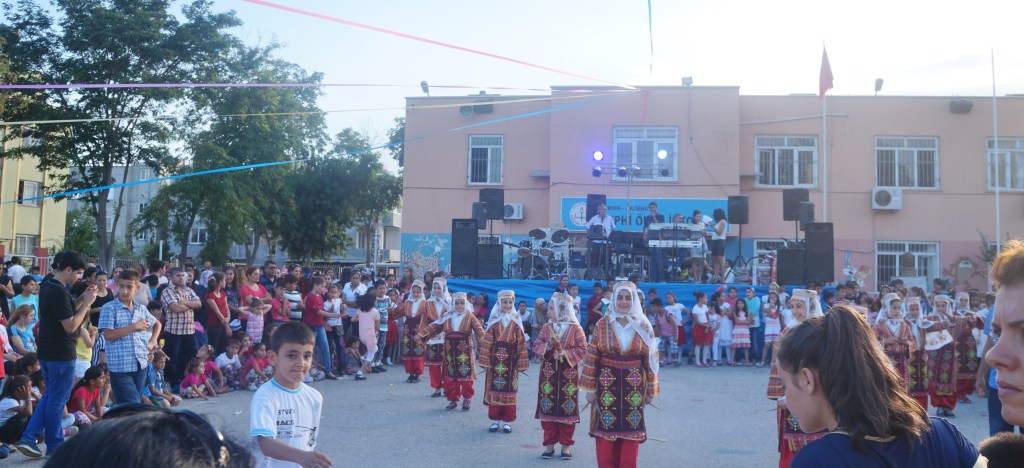 The elementary school across the street had their end of year concert last night. The concert was actually supposed to take place a week ago however it was cancelled due to a man being stabbed behind the school who subsequently died. I guess that would make it a murder. Yep there was a murder across the street so the concert was cancelled as the school (and no doubt the Polis) were concerned that there would be retaliation (as the two boys charged were Kurdish not Turkish).