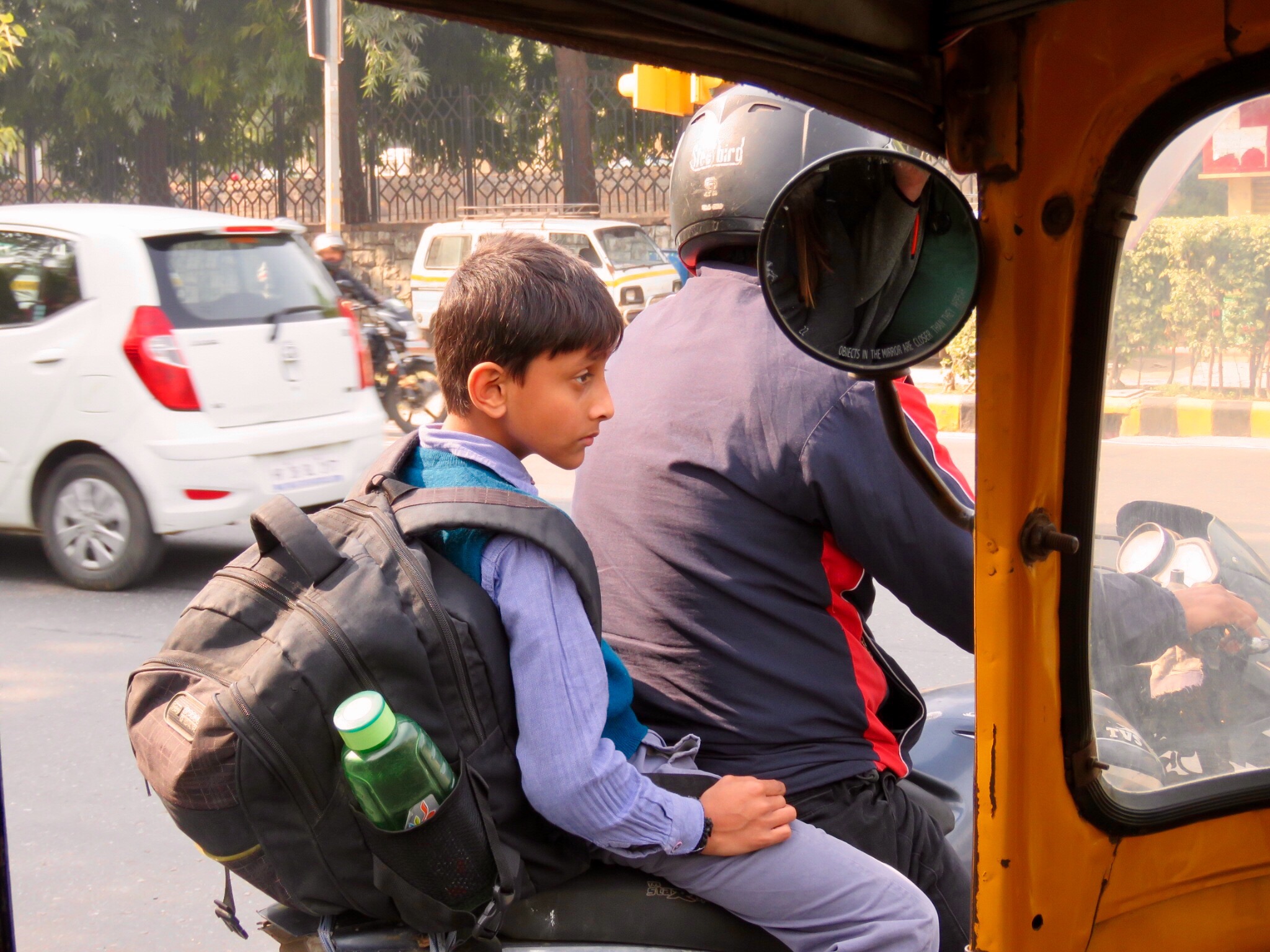 The rooftop has a restaurant, and there were a couple groups already there. We sat on our own and I ordered the “small” Indian breakfast while Derek ordered the large. Both were pretty big. Interestingly there was a group of 20-something guys all sleeping on the roof under 3 walls and a roof. One guy eventually woke them up, and they carried a foam mattress away and all had breakfast of their own. It was a very interesting scene. We thought perhaps they were hotel employees. We had a man from our tour join us for breakfast and we chatted for an hour or so over chai. He mentioned that he and a friend had rented a tuk tuk for a couple hours to take him around the city. We went off in search of a bank.