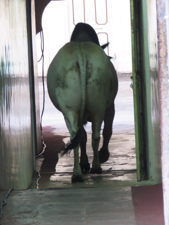 It was a while before we saw any monkeys. A man approached us saying to follow him to the monkey temple. In reality, it was a Hindu temple dedicated to the monkey god, Hanuman. Once in the temple, a cow came in the door and proceeded around the corner and up the stairs.