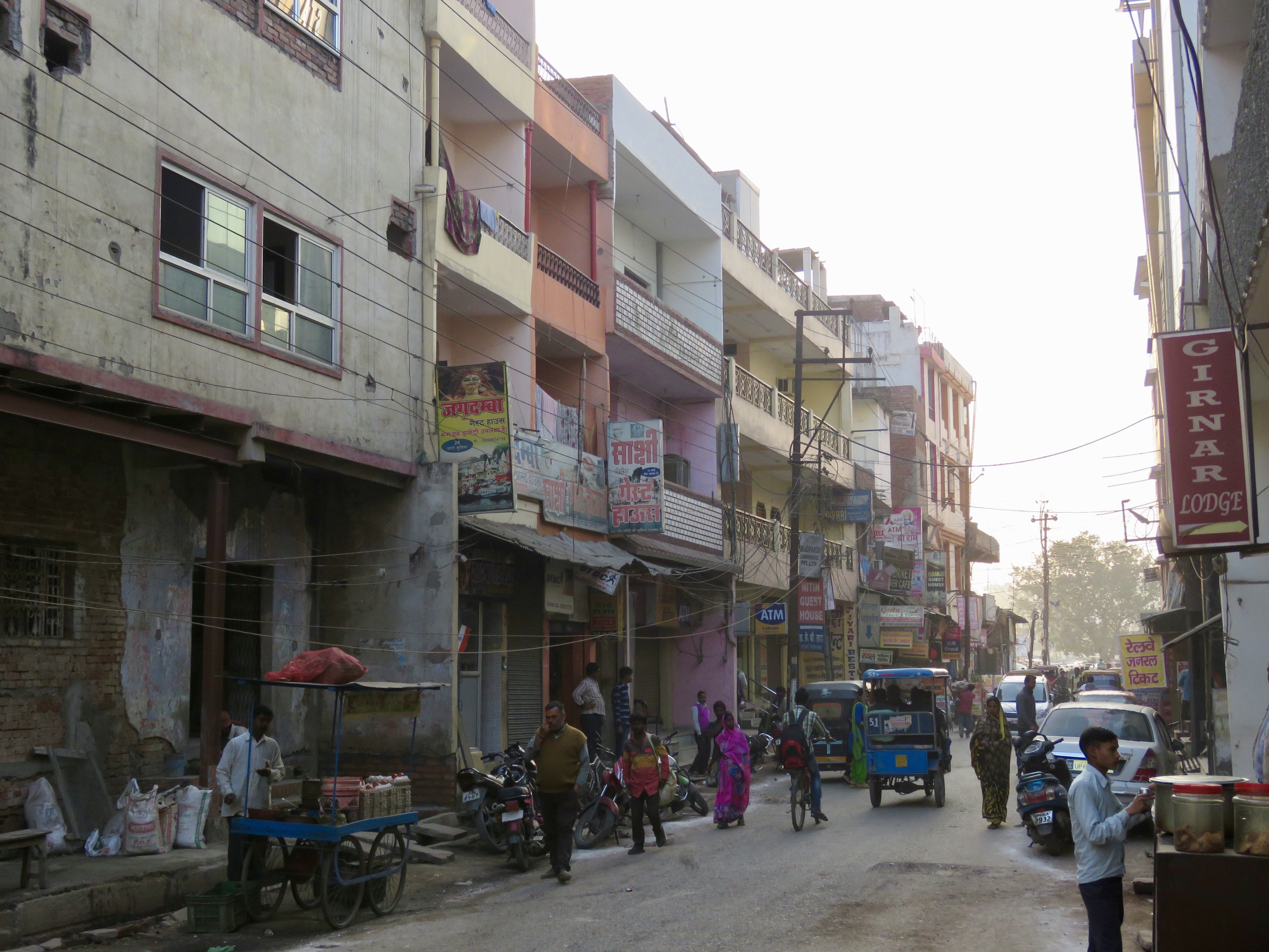 We arrived in Varanasi on time. Our hotel was across the street from the train station. After passing some stalls selling knock off sunglasses, we had a harrowing road crossing.