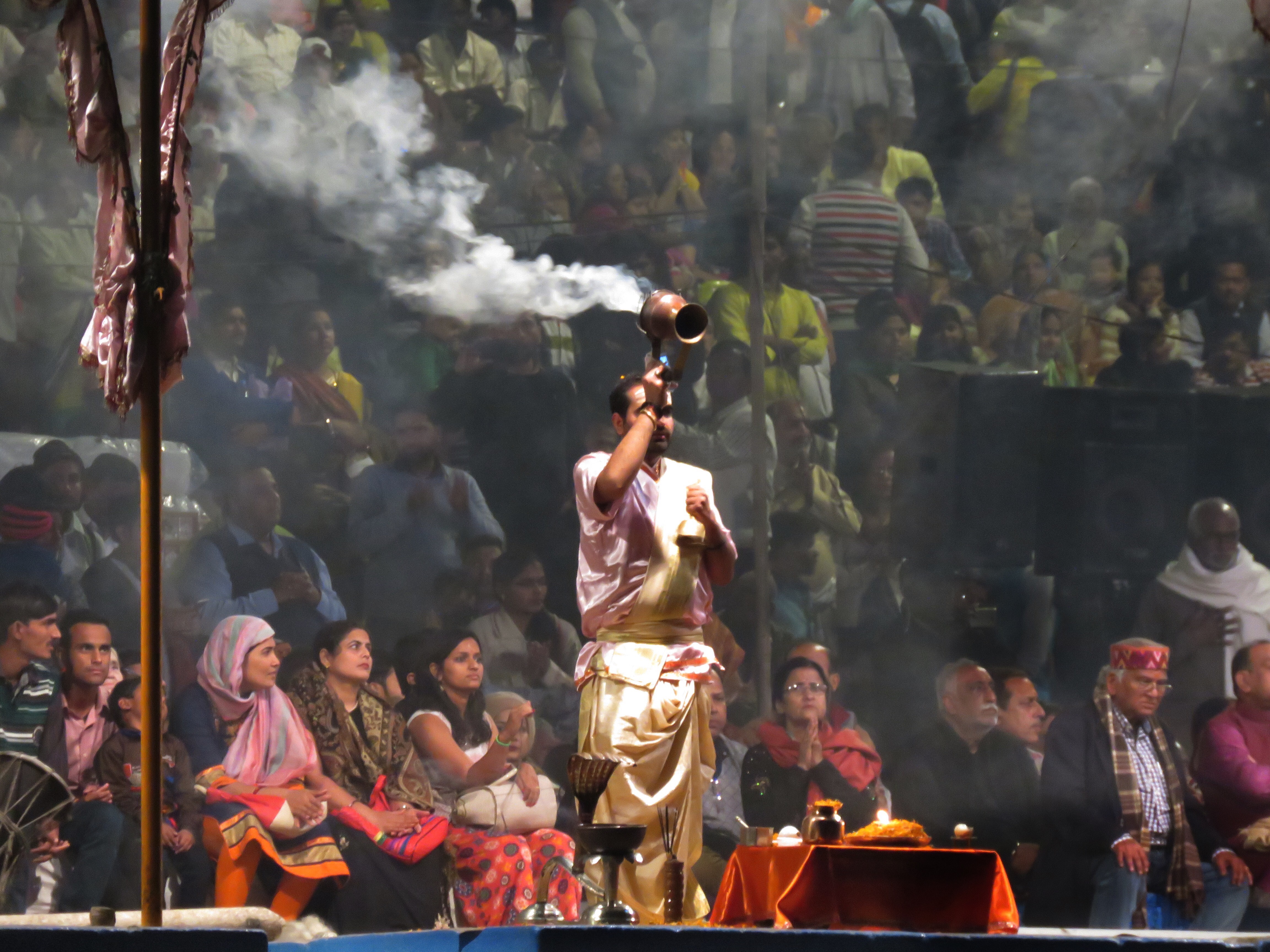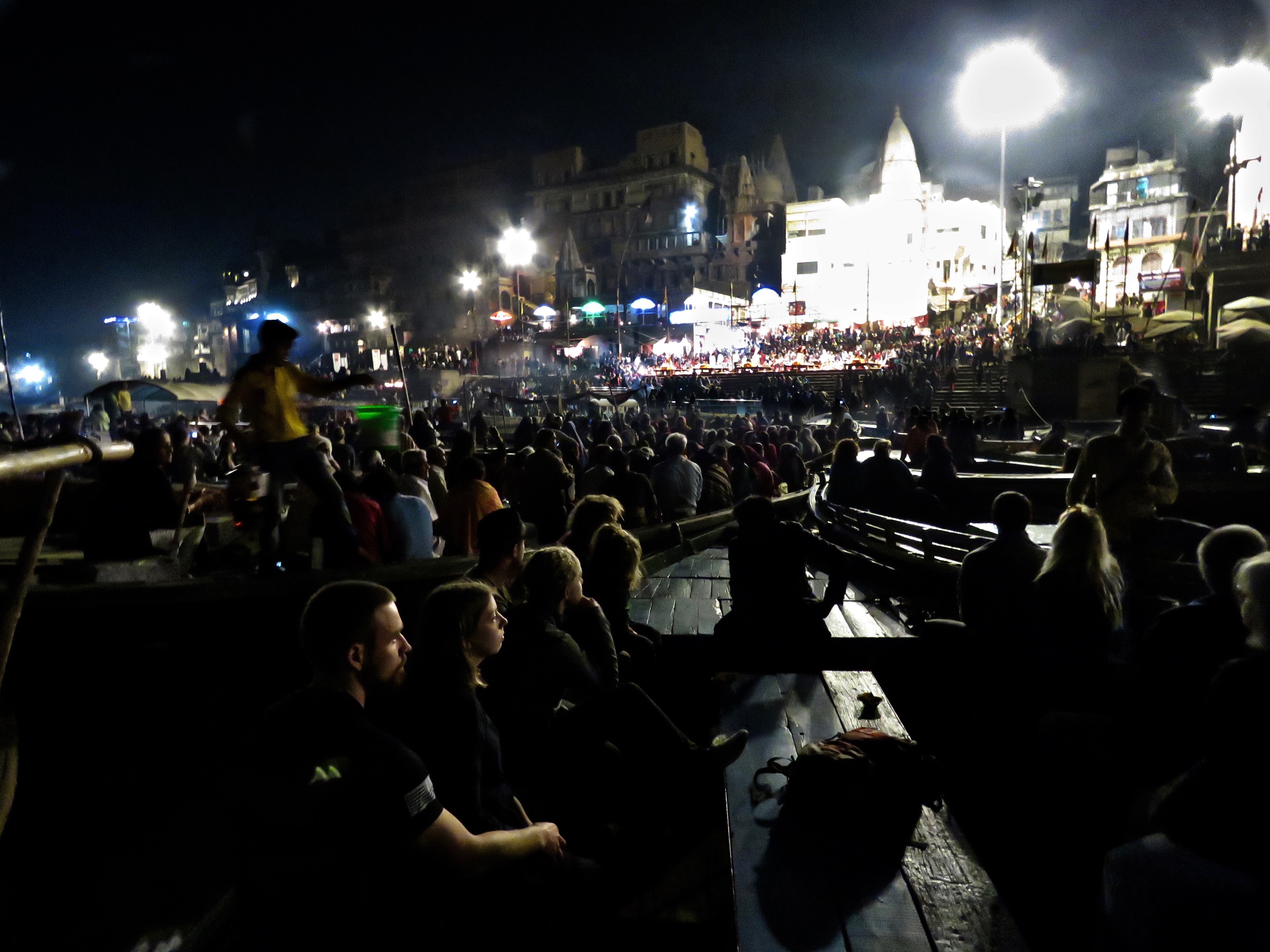 Tons of people in boats here to watch the prayer ceremony. If you see the guy with the green bucket, that’s the chaiwalla hopping from boat to boat (guy who sells chai).