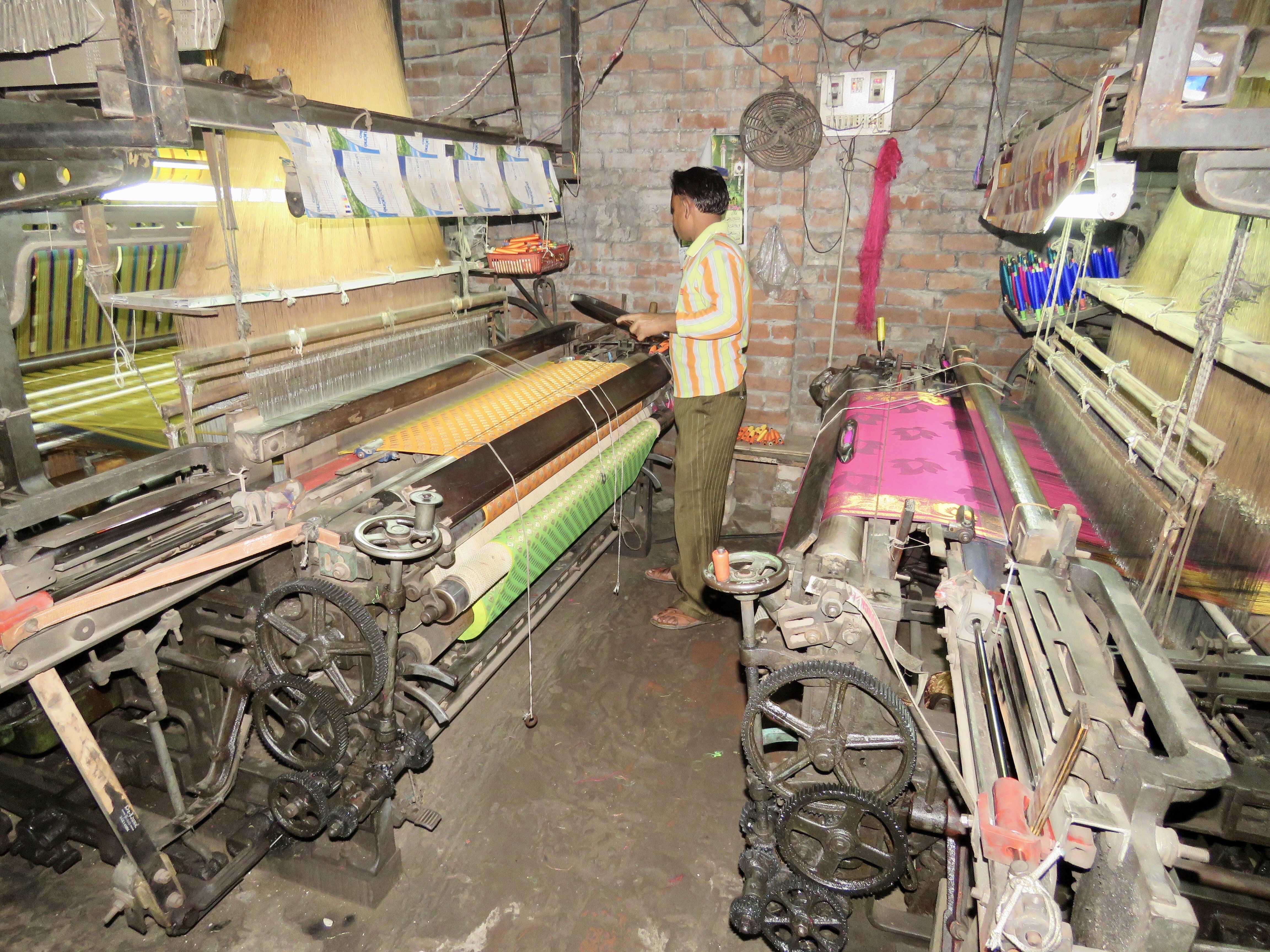 They import the silk from other places, but showed us how they weaved it into saris. It wasn’t a factory as we would see in the west, but winding alleys and different parts of he process in different small buildings. We saw the patterns were designed using punch cards, then manual looms and automated looms. The manual looms were for the pure silk, where the automated were for the mixed and artificial silk. The local guide was a bit of a flirt… he had us feel the silk on the loom and told each of us individually that it was soft like us.