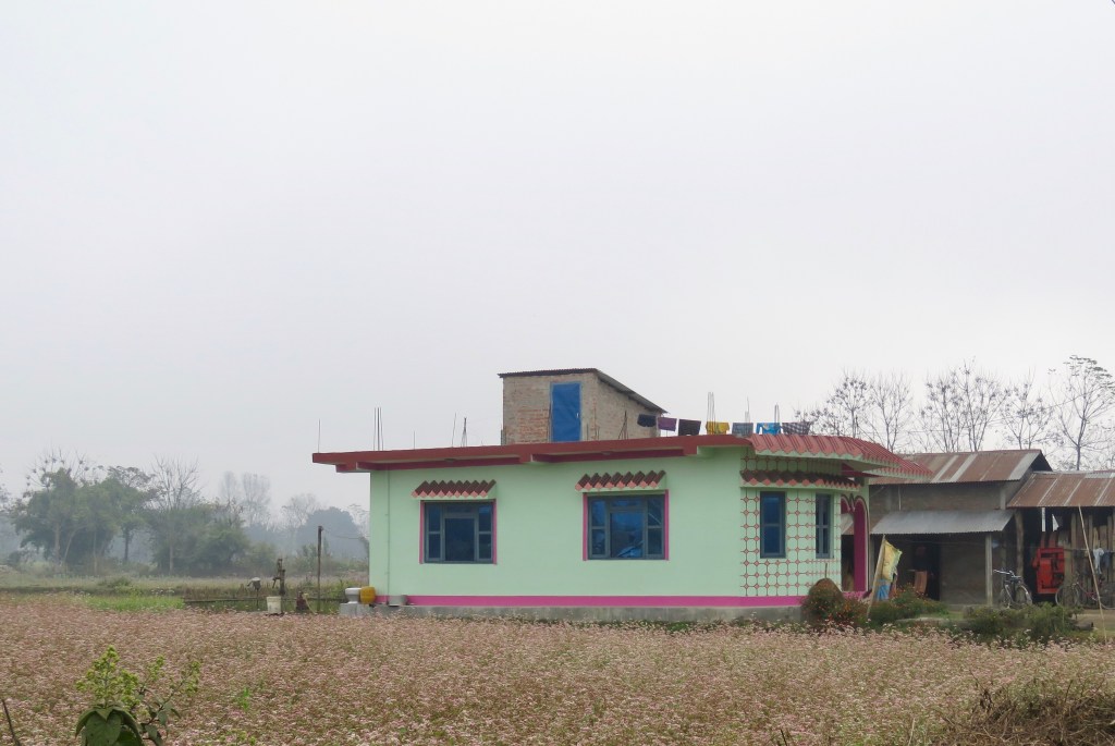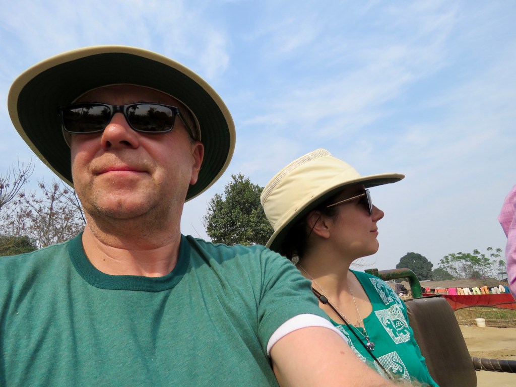 After lunch, we had a 4×4 safari into the jungle of the Chitwan a National Park. Everything was so lush and green, except for the Elephant Grass, which was yellow. The grass grows meters high and the locals can cut it once a year to maintain their homes.