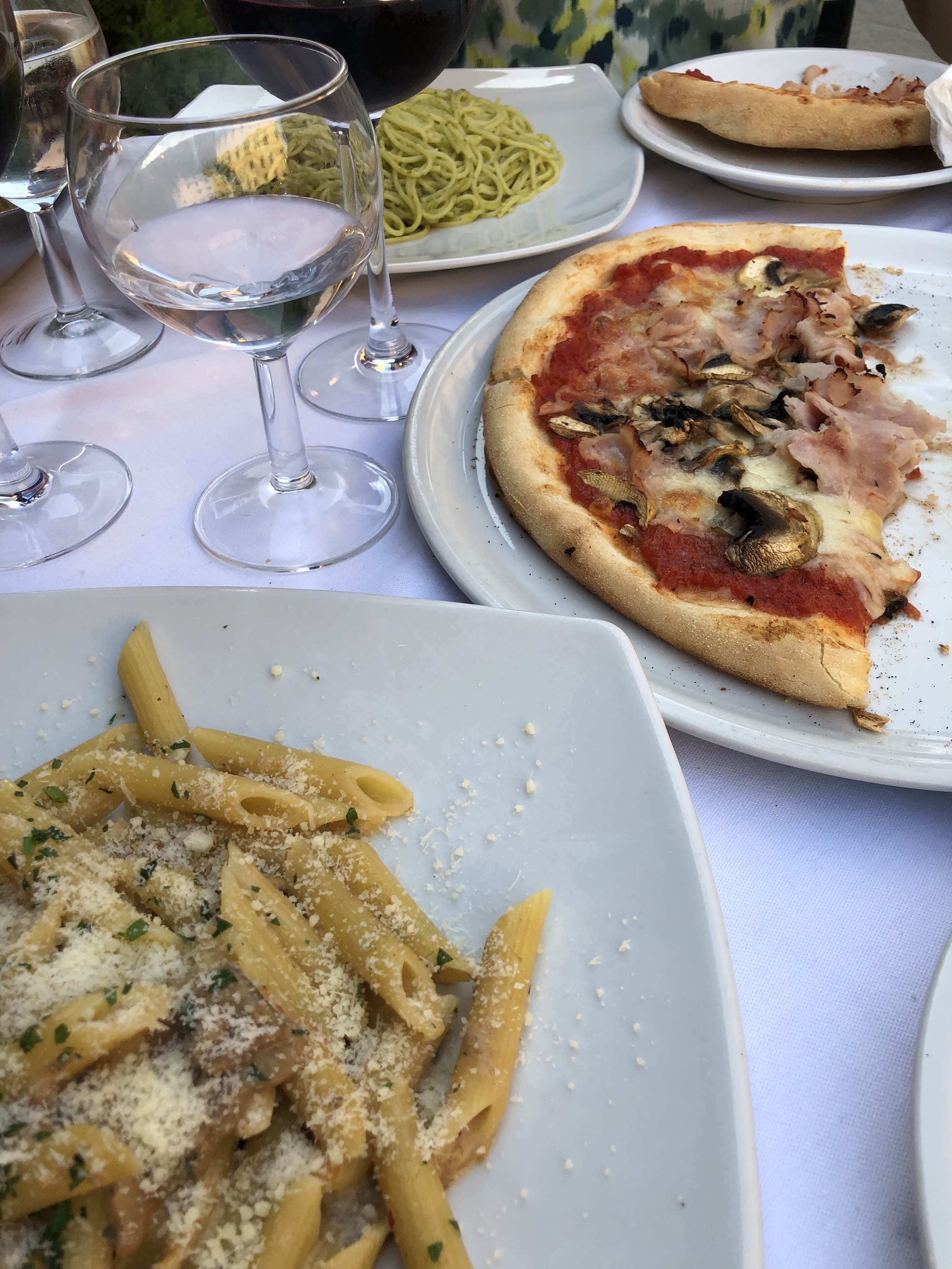 Being foodies we always try to make food a big part of any trip we do and this was not exception. We had read all about the various courses and how Italians eat, bad idea. After a Antipasti, Pizze, Secondi and Dolci, along with various wines wrapped up with Expresso and a Cappuccino, we were pretty full, well stuffed would be the word. It would be our second pizza as we had stopped at a roadside cafe the day before on the drive for lunch.