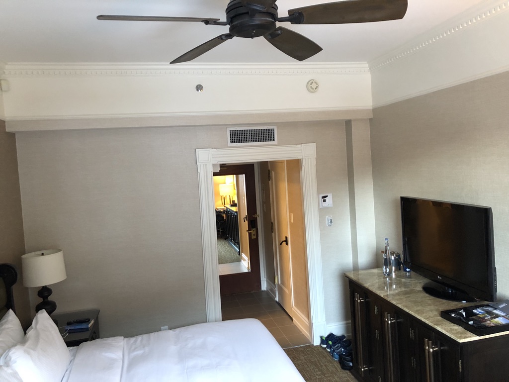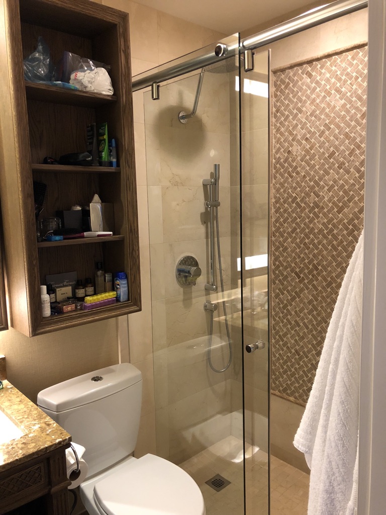 Our room was very nice, pretty nice size compared to other Fairmont Hotel rooms I have stayed in, with a king sized bed and an amazing view. Great amenities, although Jenn does like to travel with her own shampoo and conditioner, well aside from the hairs on the floor in the shower. Lots of storage room and a nice sized closet with lots of hangers, and of course in a place like this you would expect it to have proper hangers.