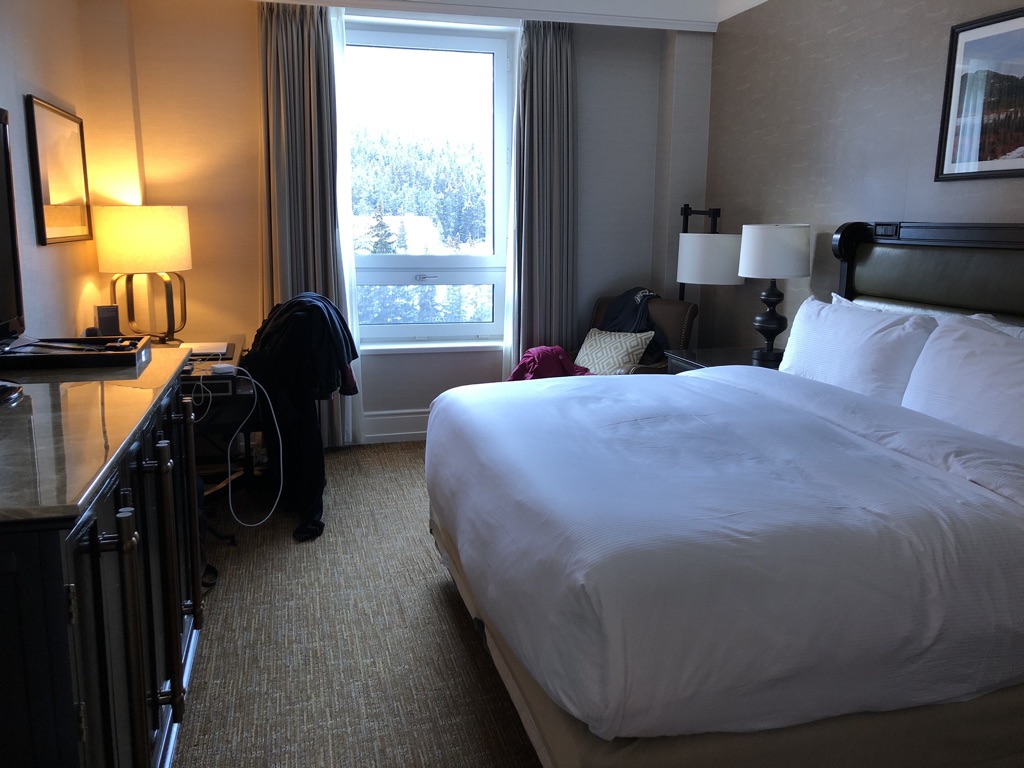 Checkin was a breeze, even more so finding out about the gold upgrade which was a very nice surprise and gave us access to the lounge were there was breakfast, evening hors d’oeuvres and a place to chill out, but non of that tonight as it was late and both tired, unfortunately I had to make a trip out to the car with the parking pass, although it was a beautiful evening for a quick trek in the snow, it was pretty chilly and I wished we had parked checked in and then moved the car to the parkade.